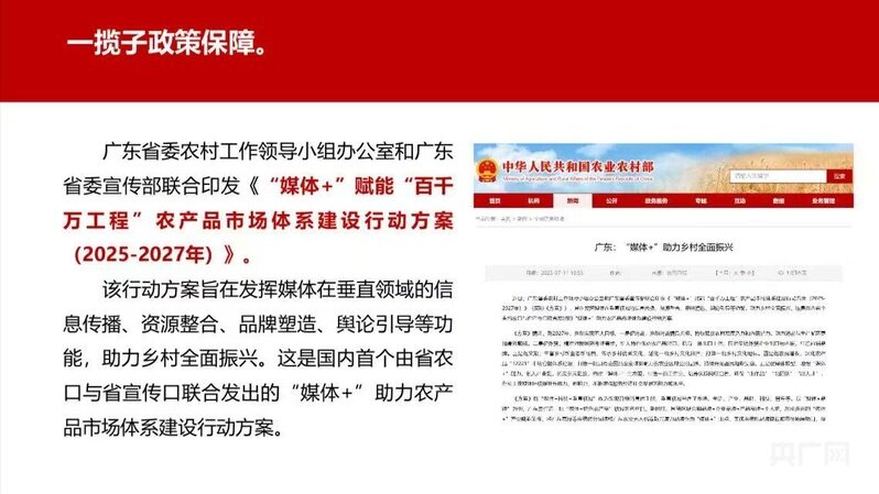 从题讲话中,张璐引见了广东正在全国首个推出的“+”系统性、常态化工做机制——《“+”赋能“百万万工程”农产物市场系统扶植步履方案(2025—2027年)》。这个步履方案旨正在指点正在农产物市场营销、品牌扶植范畴阐扬公信力及智库、、帮力村落全面复兴。